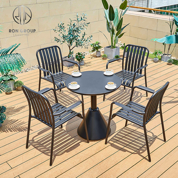 Muebles de buffet de diseño moderno, sillas apiladas de aluminio negro para patio, jardín, restaurante y comedor al aire libre, venta al por mayor