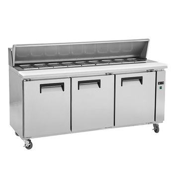 Banco de trabajo de restaurante de acero inoxidable comercial de alta calidad, refrigerador de mostrador de Pizza de 3 puertas para restaurante Hotel