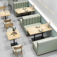 Coffeeshop Fast Food Square Cafe Commerciële Houten Lederen Restaurant Bank Sofa Cabine Zittafel En Stoel Set