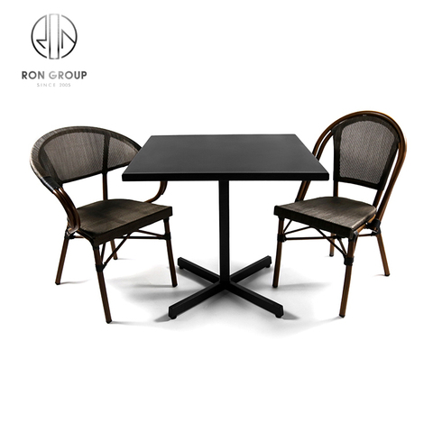 โต๊ะคาเฟ่สีดำทันสมัย,โต๊ะสำหรับคาเฟ่กลางแจ้งตกแต่งสวนลานบ้านห้องรับประทานอาหารทรงสี่เหลี่ยมเฟอร์นิเจอร์โต๊ะร้านอาหาร